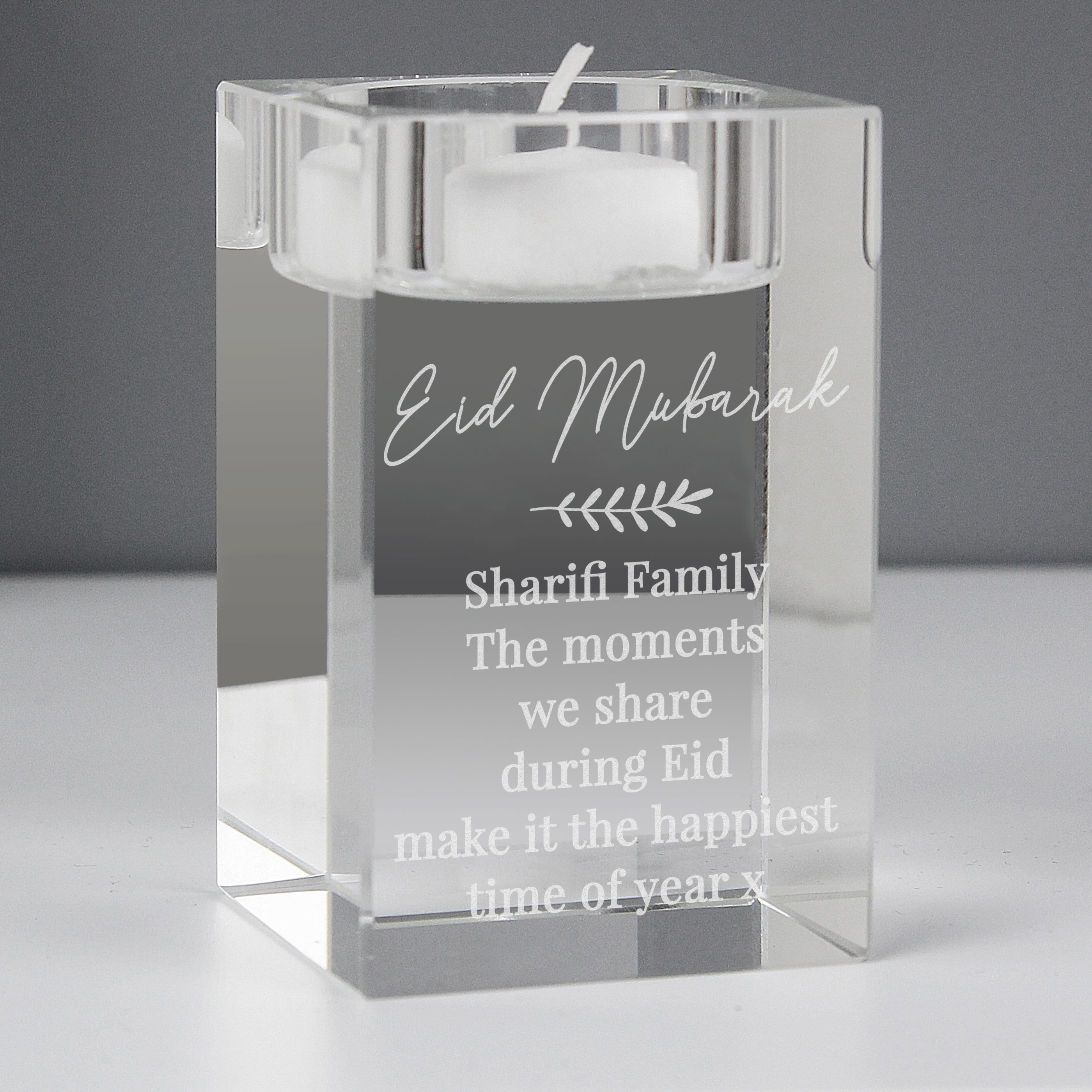 Personalised Leaf Free Text Glass Tea Light Holder