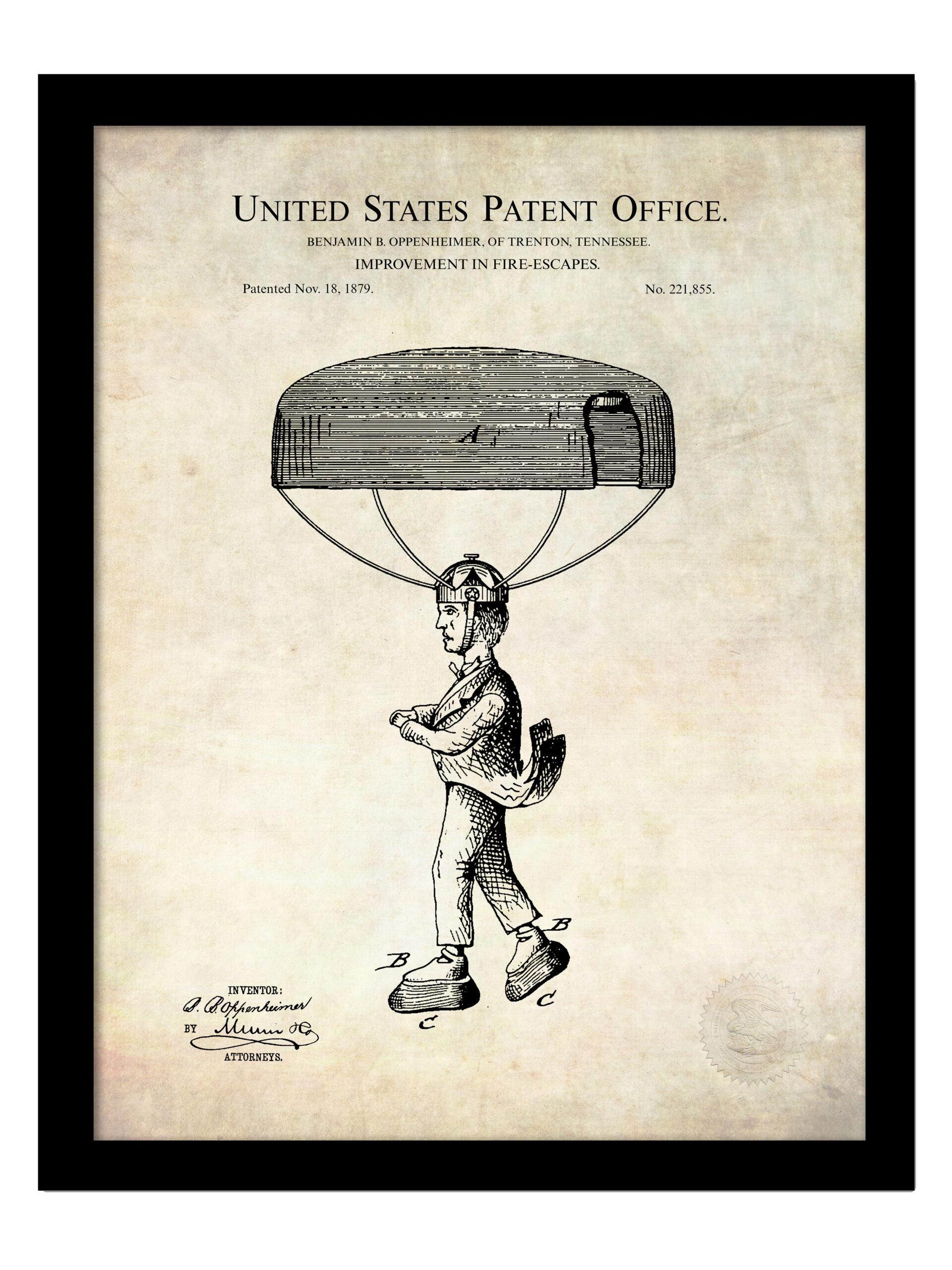 Fire Escape Invention Print | 1879 Parachute Helmet Patent