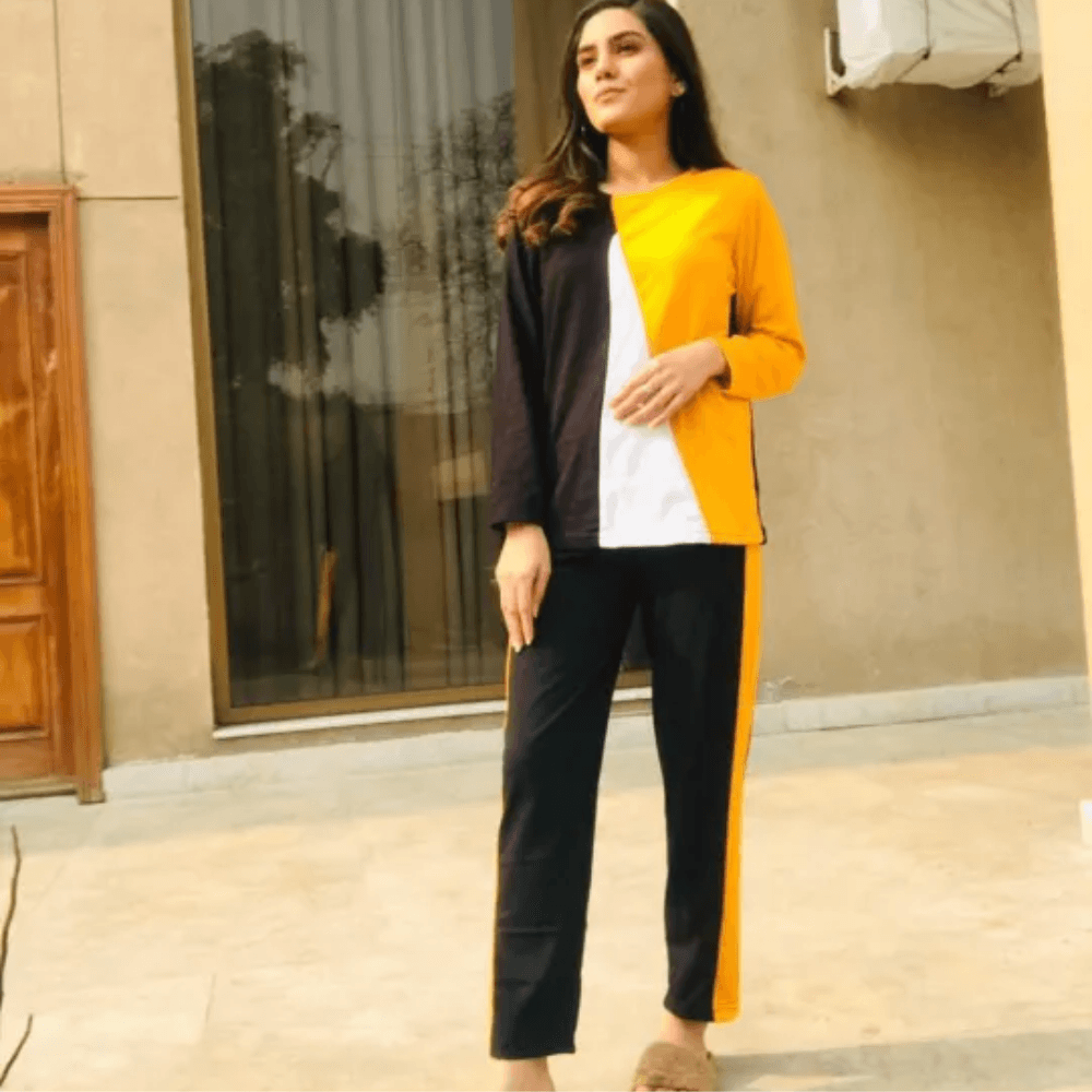 Tracksuit For Women Full Sleeves T Shirt with Panel Pajama Suit for Her